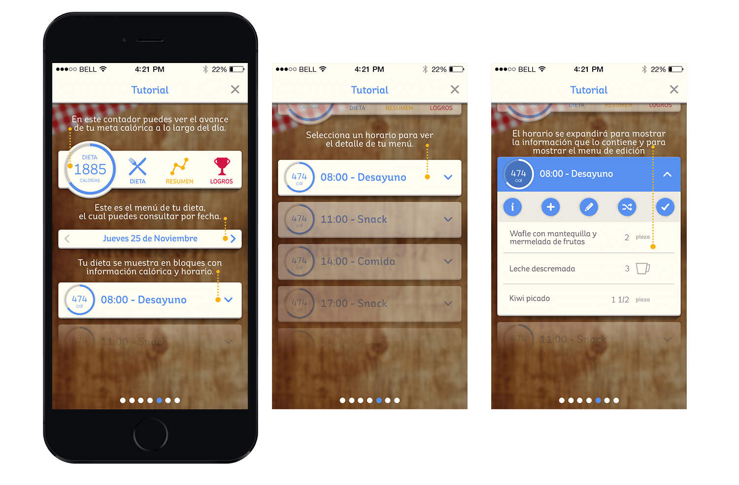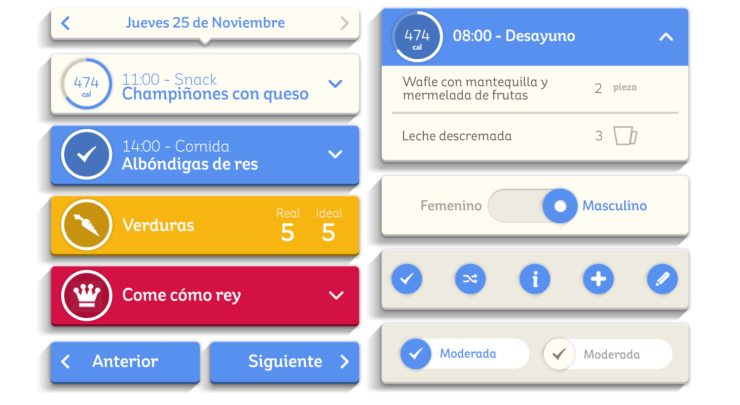 No se trata de Números y Calorías si no de tu plan alimenticio y lograr las metas, cada día se propone un programa de 3 comidas y 2 snacks totalmente personalizados y que en conjunto suman la cantidad de calorías necesarias, dichos menús son totalmente personalizables en todo momento.